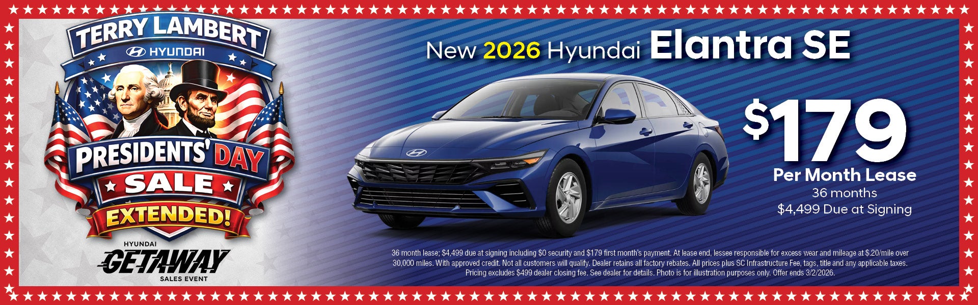 Consumer MUST bring a printed copy of Internet Price advertisements, if any, from website to dealer upon arrival at dealership before negotiations to qualify to receive any advertised prices, if any, when it is not an internet transaction provided the Internet Price offer has not changed or expired. Displayed Vehicle Price Offer(s) on this site, if any, are valid for internet customers/transactions only who mention the internet offer to the dealer upon arrival at the dealership. If a Vehicle Price Offer ("E-price" or "Internet Price" or similar description) is displayed on site, then these offers are valid for Internet customers/transactions only. MSRP is the suggested retail price set by the manufacturer not the Dealer's advertised price or selling price. Market conditions may cause the Dealer's sales price to be higher or lower than MSRP. All Internet pricing or Internet prices are subject to change without notice and all vehicles are subject to prior sale. Offers, if any, exclude SC Infrastructure Maintenance Fee, tags, title, applicable taxes, options added by the consumer, and Dealer’s $499 closing fee. The full cash price charged at any dealership depends on many factors, including all products and services bought with the vehicle. Dealer retains any and all Factory incentives and rebates on new vehicles. Dealer retains any and all factory/manufacturer/distributor and other incentives and rebates. No offers or discounts may be combined with any other offers or discounts. Additional features may have been added to enhance your enjoyment of a listed vehicle. You are not required, as a condition for the sale and delivery of a new vehicle, to purchase special features, appliances, equipment, parts or accessories that are not desired or requested. Please contact the dealership for additional details on any features or to see a vehicle without the dealer-added options. Dealer makes every reasonable effort to provide accurate and timely information, however, errors may occur; therefore, please understand that Dealer is not responsible for typographical, illustration, or pricing errors, incorrect equipment listed on any vehicle, or discrepancies in any statements of condition. Please verify information with a customer service rep. For In-Transit Inventory, any date of arrival is estimated. The actual date of delivery may vary due to circumstances beyond Hyundai and the dealer’s control. Please contact your local Hyundai dealer for availability details.